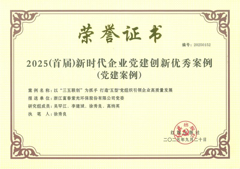 浙江富春紫光環(huán)保股份有限公司(以下簡(jiǎn)稱“紫光環(huán)?!保┏闪⒂?000年9月,是一家集水庫原水、市政供水、城鎮(zhèn)污水處理、工業(yè)廢水處理、農(nóng)村污水治理、污泥處置、管網(wǎng)建設(shè)與維護(hù)、河道生態(tài)治理為一體的綜合型環(huán)保企業(yè),注冊(cè)資本77139萬元,是浙江省屬國有企業(yè)杭州鋼鐵集團(tuán)有限公司節(jié)能環(huán)保板塊核心成員(上市平臺(tái)為浙江菲達(dá)環(huán)保股份有限公司600526.SH),浙江省綜合實(shí)力最強(qiáng)的水環(huán)境綜合治理龍頭企業(yè),國家高新技術(shù)企業(yè)。先后獲得“浙江省五一勞動(dòng)獎(jiǎng)狀”“全國工人先鋒號(hào)”“中國水業(yè)最具成長(zhǎng)性工程公司”“中國水業(yè)十大優(yōu)秀工程技術(shù)公司”等榮譽(yù),連續(xù)多年信用等級(jí)被評(píng)定為AAA級(jí)。